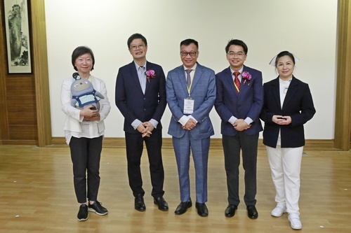 中圖:林欣榮院長說,全人醫療照護是國際趨勢,而護理師在其中扮演很重要的角色,讓病人不僅在醫院,返家後也能得到很好的照顧,讓他們在生理、心理、社區三方面都獲得全方位的整合照護。(攝/江家瑜)右圖:五位講師,左起錢淑君副教授、陳正見副教授、潘永雄副教授、洪成福博士、鍾惠君主任。 (攝/劉鴻榮)