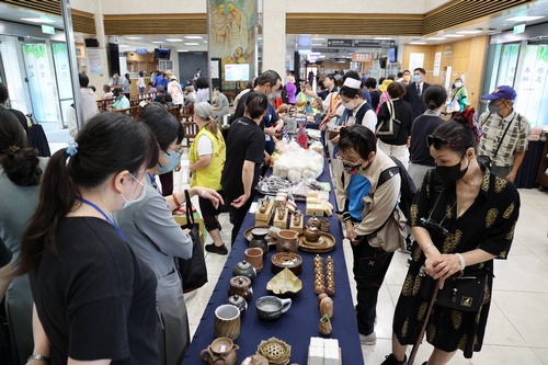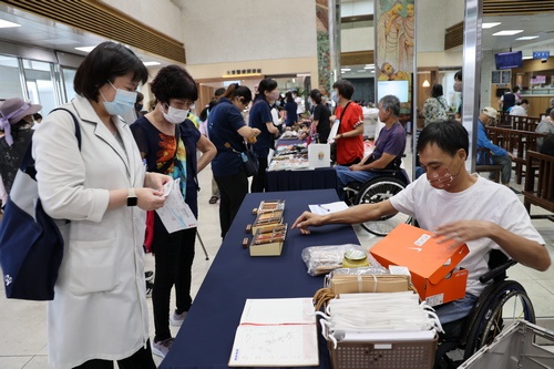 圖:花蓮慈院同仁及來院鄉親熱烈支持脊髓損傷傷友的文創品及手作美食。(陳安俞攝)