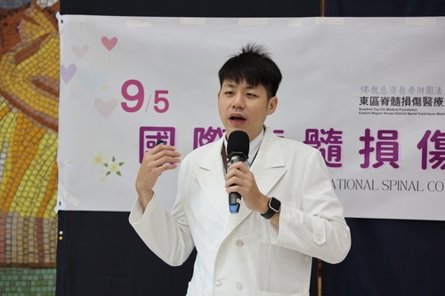 9月5日是國際脊髓損傷日,花蓮慈濟醫院東區脊髓損傷醫療重建中心與傷友聯合舉辦「愛要脊時,讓生命發光發熱」活動,展售傷友文創品及手作美食;慈濟醫療法人副執行長郭漢崇、院長林欣榮等脊髓損傷照護團隊也到場祝福,輪椅界的神鵰俠侶歐淳友、蔡美雅夫婦視彼此為生命中的太陽,更以「不要放棄,珍惜彼此,努力向前」與傷友及家人共勉。