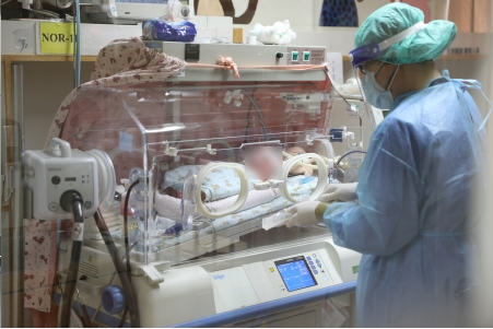 圖:新生兒出生後第零、24、72小時的PCR核酸檢測結果都是陰性,目前在新兒加護病房中進行隔離照護。