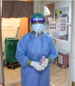 當時值班的陳姵辰醫師表示,雖然確診孕婦來的時候是周末,但是其實有婦產科需要的民眾還是很多,光是從周五晚上到周六清晨,就接生了四個寶寶,包含兩位一般孕婦,一位居家隔離中的孕婦,還有這位確診孕婦。因為確診孕婦平常是在別的醫院做產檢,所以,在急診時就必須穿著全套防護裝備,為她進行各項必要的檢查,原本可以在半小時內完成的檢查與評估,在防疫要求下,團隊需要花上三倍的時間才能完成,還好團隊平常就做好準備與模擬演練,克服滿身汗水與防護面罩起霧的困難,順利在負壓手術室完成花蓮首例確診孕婦剖腹產手術。