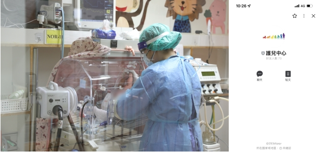 圖:因為媽媽與家人已經出院進確診的居家照護,花蓮慈院護兒中心團隊會透過LINE跟家長會報新生兒最新狀況。
