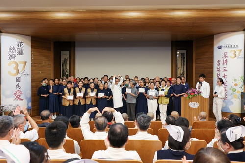 花蓮慈濟醫院八月十七日歡度三十七歲生日,於十二日上午舉辦院慶大會,醫護、醫技、行政與慈濟志工齊聚,共同回顧三十七年來的點點滴滴,並由院長室主管代表院方表揚服務十年、二十年、三十年的資深同仁及年度優良同仁。花蓮慈院啟業至今,醫護團隊不僅提供急重症救護,也深入社區推動健康促進,林欣榮院長期許大家繼續秉持「以病人為中心」的理念,打造「無圍牆醫院」,守護花東鄉親健康。