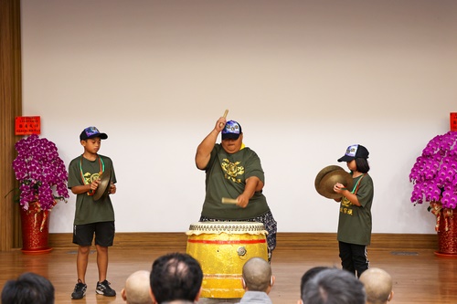 左圖:院慶大會上,范先生也特別與姪子和姪女合作進行擊鼓演出,獲得全場熱烈掌聲。