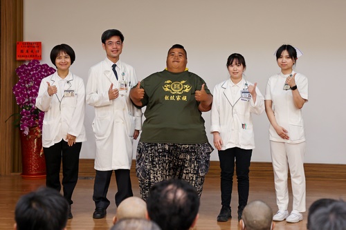 花蓮慈院2022年急診、門診及住院服務人次為745,595,幫助了許多病人走向健康之路。918玉里大地震的受災居民范先生,因體重過重,甚至無法出門工作,經由慈善志業轉介醫療評估有減重需求,去年十月開始至花蓮慈院減重門診治療,歷經嚴格的藥物和飲食控制,以及今年四月的縮胃手術,至今已成功從最初的258公斤減至196公斤。范先生表示,在減重之前走兩步路就會非常喘,對比現在的行動自如,真的很感恩有花蓮慈院醫療團隊的協助,讓他能順利減重,重新回歸打鼓的隊伍中,繼續進行演出;也希望自己的減重故事,能夠激勵更多有相同嚴重肥胖問題的病友,積極面對並解決問題。院慶大會上,范先生也特別與姪子和姪女合作進行擊鼓演出,獲得全場熱烈掌聲。