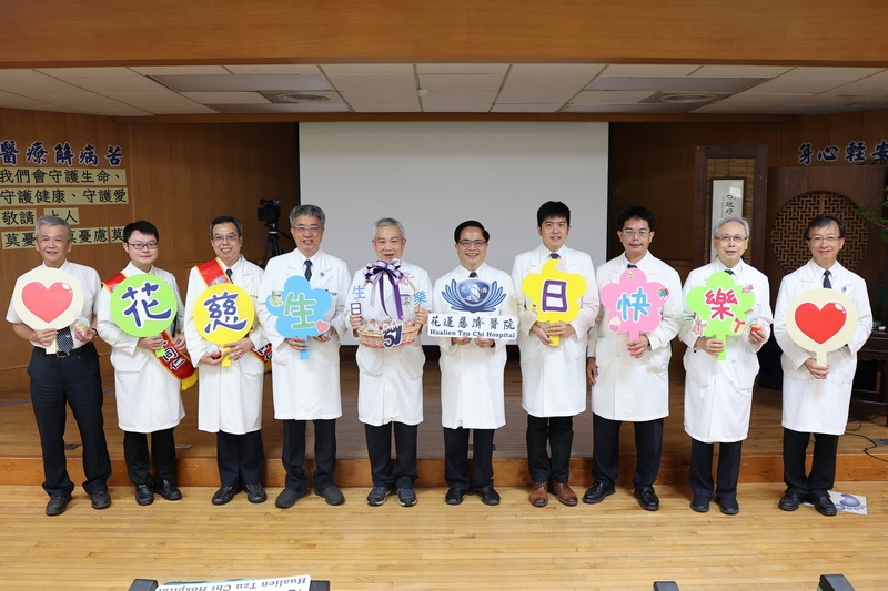 8月17日一早,花蓮慈濟醫院院長林欣榮與超過200位同仁、醫療志工在晨間人文講座上,和全球的慈濟人連線,同步慶祝啟業37周年的生日,並由傑出優良同仁一般影像科主任張寶源醫師、心臟內科王惠生醫師分享如父子般的溫馨師生情,副院長陳宗鷹分享人才培育兼衣缽傳承的故事。近午時分,林欣榮院長與醫務秘書李毅在大廳分發紅蛋及小蛋糕,感恩鄉親對花蓮慈院的信賴。