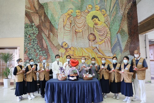 ▲花蓮慈院特別準備了生日小蛋糕,感恩醫療志工擔任慈院的後盾,處處照顧著同仁。(左中圖攝影/陳炳宏、右圖攝影/人資室提供)