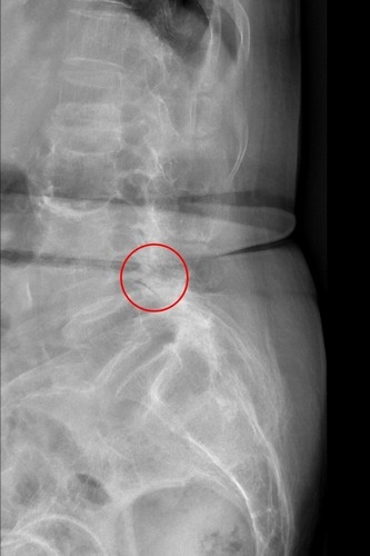 左圖:經X光檢查發現郭奶奶腰椎滑脫。