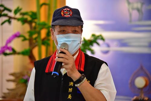 右圖:花蓮縣消防局局長林文瑞分享,花蓮是一個幸福、快樂、又健康的城市,希望大家一起共同來維護。