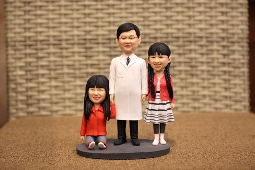 ▲陳英和院長拿著陳團治贈予的公仔,與九年前的團治照片和現在的團治開心合影。