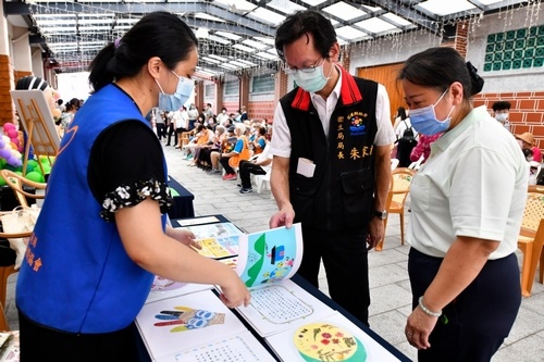 右圖:花蓮縣衛生局局長朱家祥也到場給予長者們鼓勵,在每一攤都停留下來仔細瀏覽。