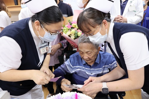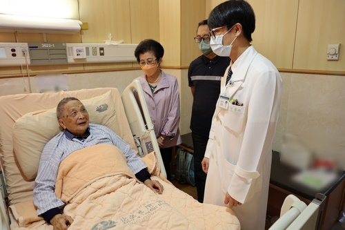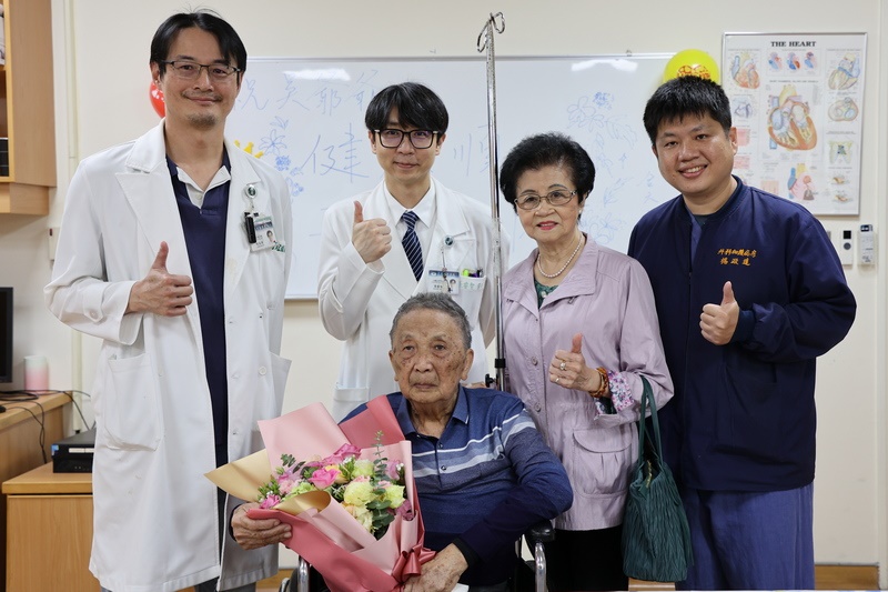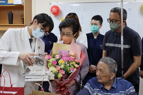 90多歲的吳阿公,今年4月與妻子一起來花蓮遊玩,沒想到吃完晚餐後,突然失去意識,緊急送往花蓮慈濟醫院急救,經過檢查發現吳阿公是急性心肌梗塞,由外科部主任張睿智為他進行冠狀動脈繞道手術後,在重症加護外科主任何冠進與團隊的細心照護下,在5月17日下午,於眾人的祝福下歡喜出院返家。吳阿公熱情分享,這裡的醫師、護理師很讚!並邀團隊去北部時,到他家一起唱卡拉OK、品茶聊天。