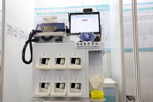 許仁駿主任表示,「智能九號生命之鏈–整合 ACLS 指引與智慧藥櫃之急救資訊管控系統」,即是以急救智慧醫療車整合ACLS資訊系統、臨床生理監測與智慧藥櫃,不僅能幫助醫護人員用藥與交接,也能依據病人當下的情況,自動給予急救團隊最佳化的處置流程,並依急救實際情形提供正確的藥物與提示使用劑量,提升執行ACLS正確率與減少額外的錯誤處置。