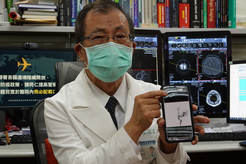 圖說(右):吳彬安副院長親自操作「智慧式全方位行動巡房APP」,手機即可簡單縮放醫學影像畫面,清楚觀看細節。