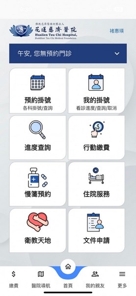 左圖:「慈濟智能健康管家APP」提供包括行動繳費、慢性病連續處方簽箋預約、住院相關功能、個人化行事曆推播等多元服務。