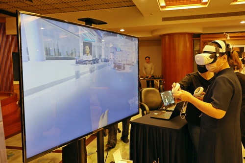 ▲「造血幹細胞捐贈元宇宙」還可以運用各種模擬任務進行宣導志工教育訓練課程,現場不少志工體驗這套系統。