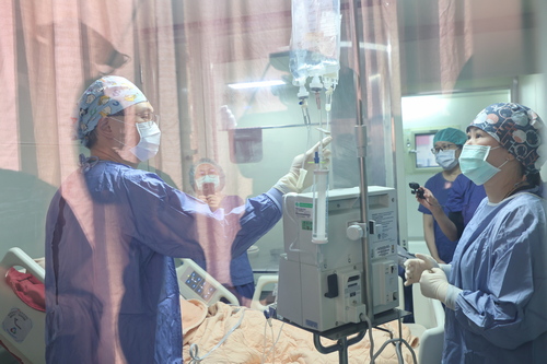 圖說:2024年1月2日,花蓮慈濟醫院為全臺灣第一位健保給付CAR-T治療受惠的瀰漫性大B細胞淋巴瘤病人-張女士,進行CAR-T細胞輸注。(攝影/鍾懷諠)