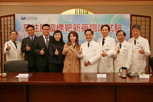 左圖:花蓮慈濟醫院林欣榮院長(右四)帶領團隊與長弘生技公司成功開發抗惡性腦瘤標靶新藥Cerebraca®Wafer,並於2017年啟動臨床試驗,已完成臺灣Phase IIa期臨床試驗收案。圖左五為長弘生技董事長周姵妏博士、左四為東華大學研發長邱紫文教授 、右三為創研中心副研發長韓鴻志教授、右二為吳彬安副院長、右一為慈濟大學醫學院院長陳宗鷹。(楊國濱攝)
