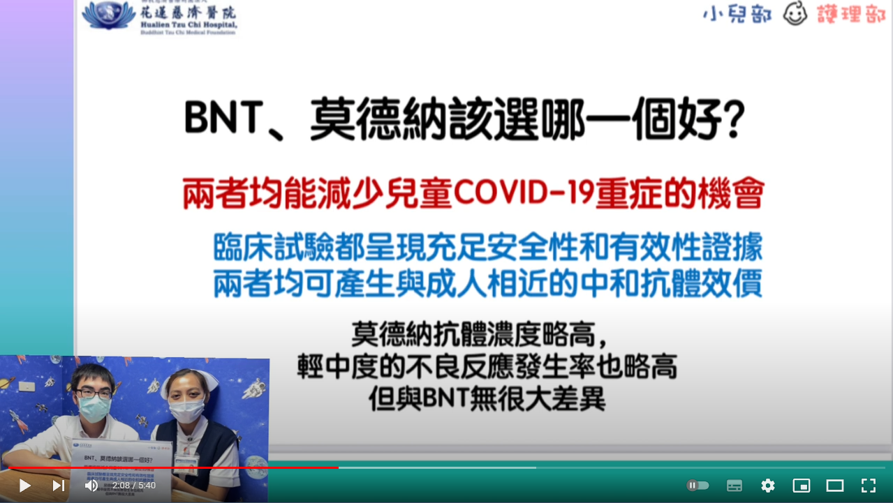 A:BNT及莫德納皆是mRNA疫苗,其實在各種臨床試驗都是安全的,施打後也能產生足夠的抗體來面對COVID-19,減少兒童罹患COVID-19重症的機會。