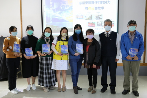 圖說:花東衛教資源共享平台APP推廣頒獎儀式,由李名玉組長頒發感謝狀,感謝東區醫療院所的用心外,花蓮慈院也送上講述花東醫療夥伴故事的新書《日頭浮海照亮的所在》與各醫療院所分享。