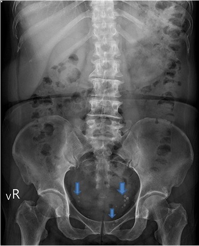 圖:骨盆底肌肉筋膜炎的臨床表現,是內診時會觸碰到「結節性痛點」(MTrPs,藍箭頭處),約0.5公分「凸起結節」,且一碰就痛。
