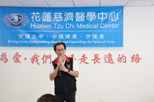 中圖:慈濟基金會副執行長熊士民近日多常駐光復,並與醫療密切合作,他11日也前來分享在醫療站見到的溫馨故事。