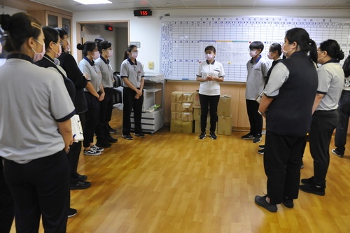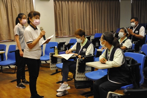 引導師吳麗月護理師表示,這次演練題有「跌倒怎麼辦?」,學員進場要先評估輔具、服裝、鞋具是否適切,在案家環境能否活動,這是居服員以往缺乏的經驗,希望透過引導能讓他們從最基本的知能做起,不過學員都很緊張,但態度都很好,希望這次OSCE能對他們職場有所助益。
