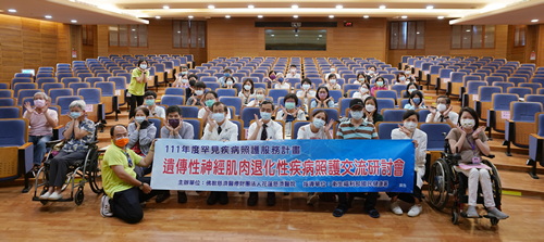 圖說(左):花蓮慈院遺傳諮詢中心承辦東區罕見疾病照護服務計畫,定期舉辦各種研討活動,圖中為遺傳性神經肌肉退化性疾病照護交流研討會,專家與病友、線上網友共聚一堂。