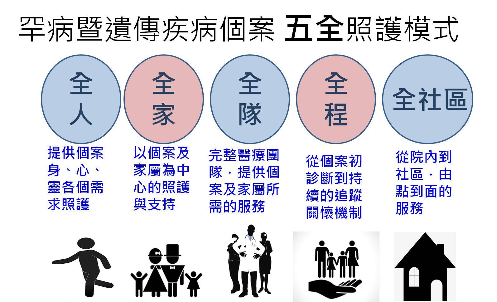 圖說(中、右):花蓮慈院遺傳諮詢中心,跨專業團隊提供全人、全家、全隊、全程、全社區方式的五全照顧模式。