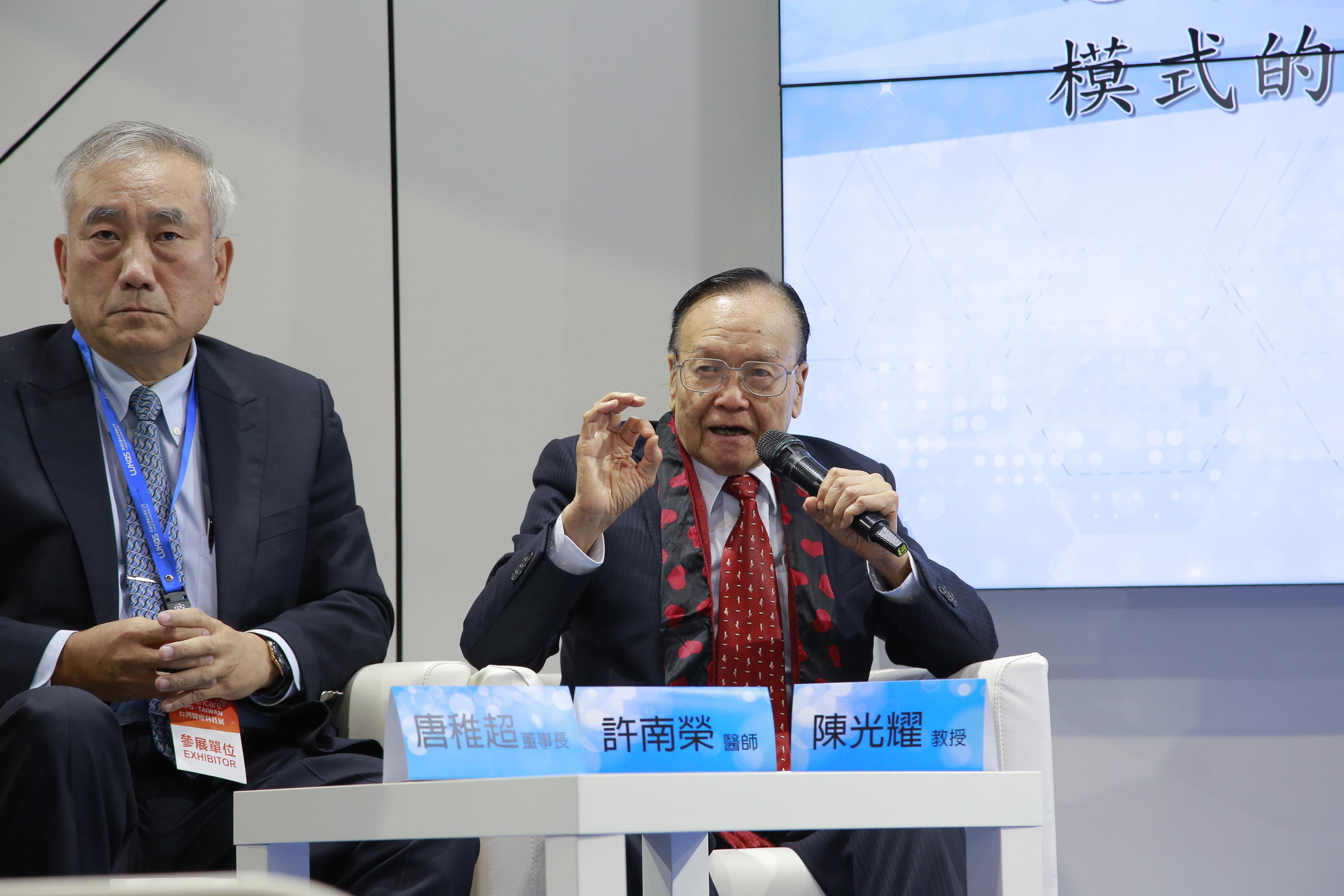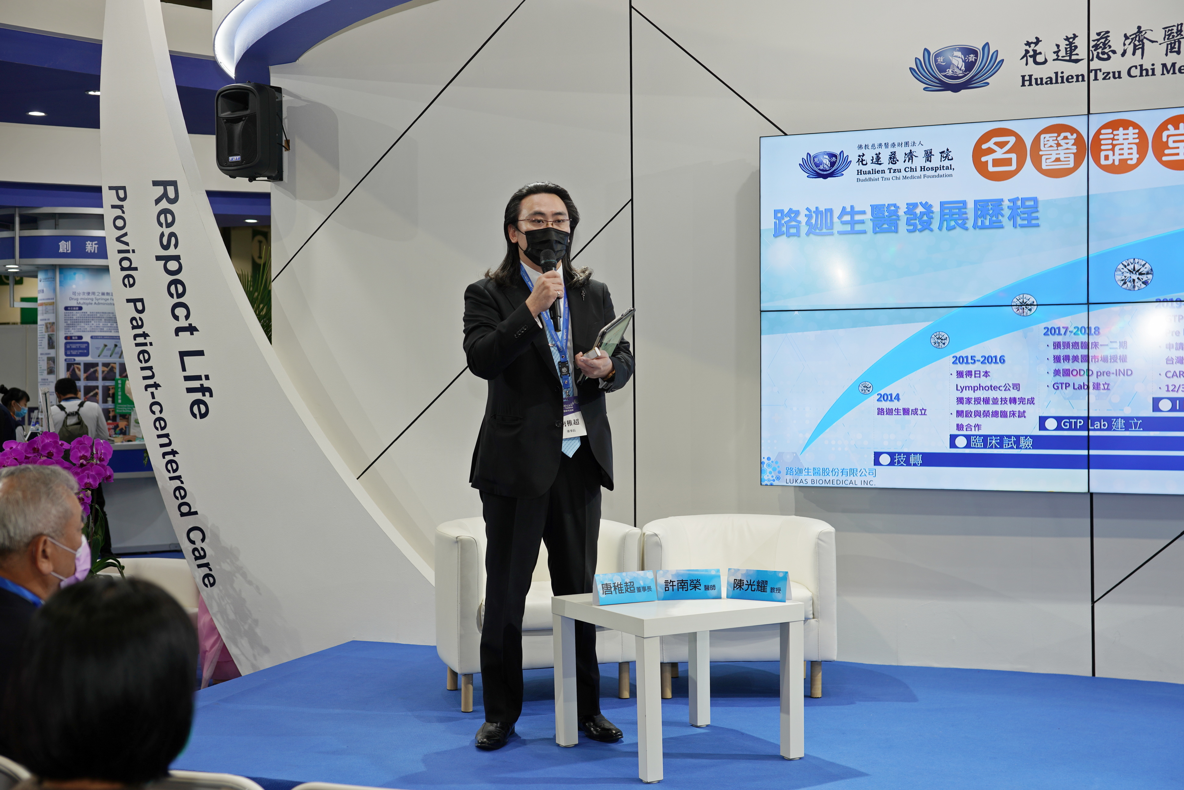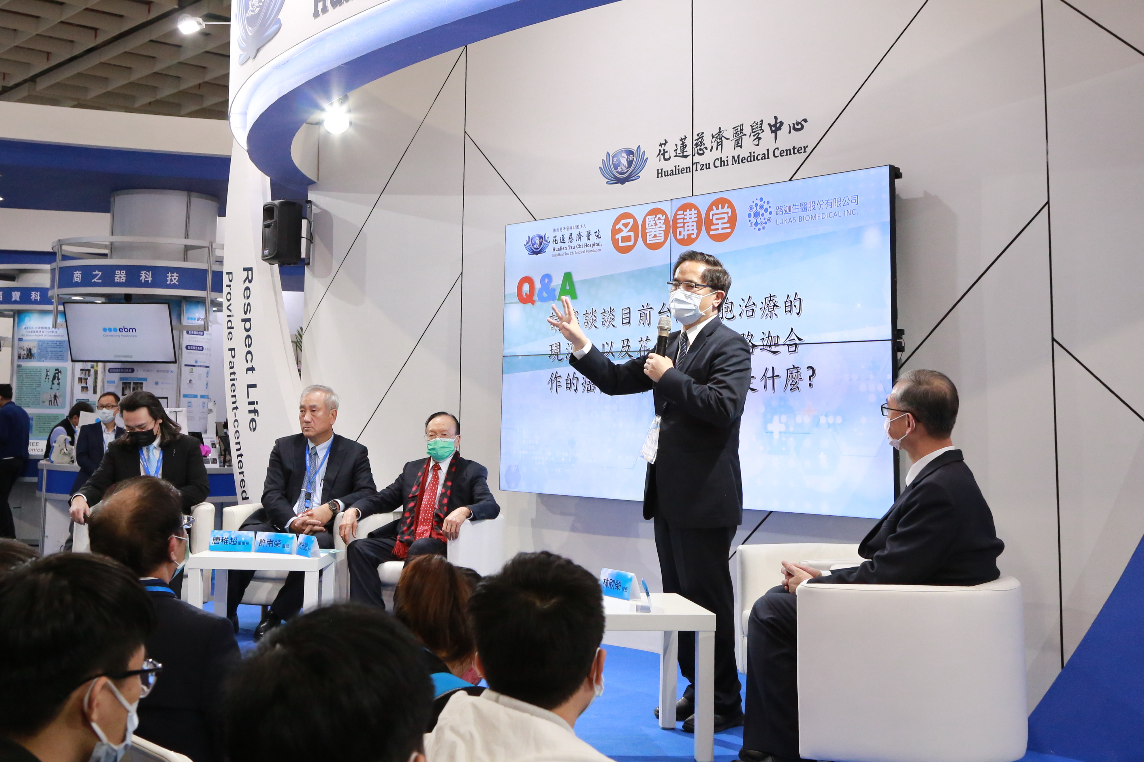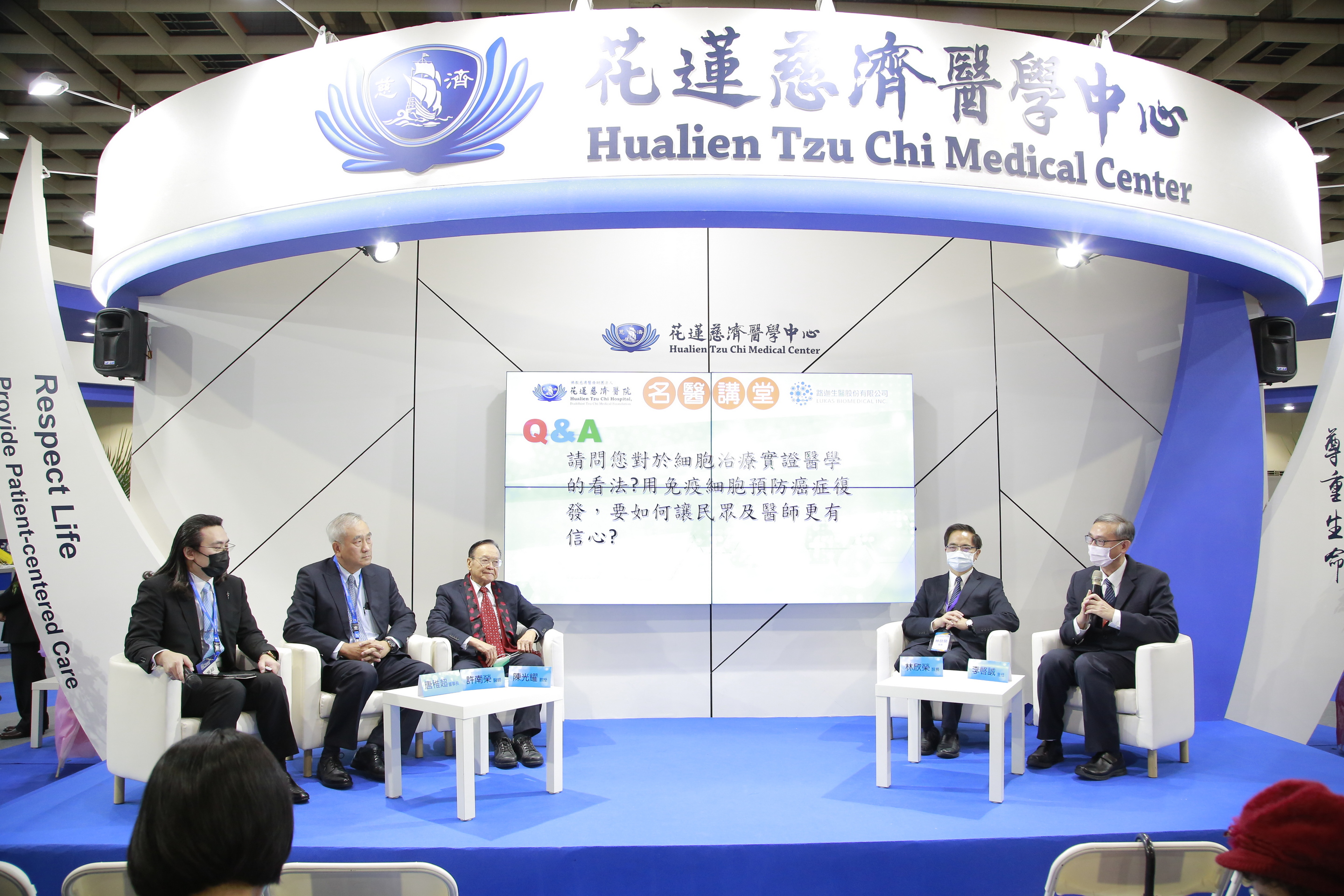 右圖:花蓮慈濟醫院與路迦生醫4日下午於台灣醫療科技展專家座談中,由花蓮慈院院長林欣榮、血液腫瘤及細胞治療專家李啟誠主任、陶聲洋防癌基金會董事長陳光耀教授、胸腔外科專家許南榮醫師以及路迦生醫董事長唐稚超,分享最新無毒無創免疫細胞治療技術、治療經驗,以及最新防癌症復發的議題。