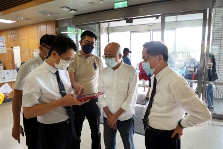 圖:智邦科技團隊向花蓮慈院林欣榮院長說明如何利用新型號的AP,讓Wifi6能遍布院內無死角。