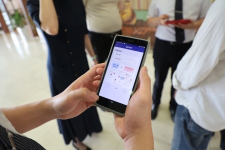 圖:花蓮慈院人工智慧醫療創新發展中心專員王志傑現場展示,如何透過智慧型手機應用SIL室內定位技術,讓民眾可以去到院內正確的地方。