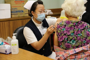 秋冬季節交會是流行性感冒盛行的高峰期,花蓮慈濟醫院自十月十五日起,特別針對年滿65歲以上的長者,進行公費施打流感疫苗服務,兩天服務量就超過八百人。從十七日開始,連續兩天,進行院內同仁接種流感疫苗,花蓮慈院林欣榮院長也率先挽起衣袖自費施打四價流感疫苗,也順便打一針肺炎鏈球菌疫苗。林院長表示,就醫學研究報告上來看,疫苗的有效度與覆蓋程度有關,也就是說施打民眾越多,疫苗能發揮更大的效果,預防流感大流行。