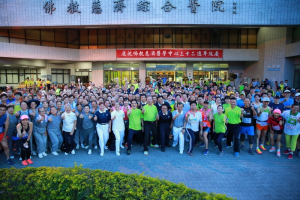 花蓮慈濟醫院慶祝三十二周年慶,十二日早上五點半準時開跑,七百五十位社區鄉親與醫院同仁自慈院圓環出發,迎著晨曦陽光,沿著國福大橋、轉進福光街,在跑進田間小路往北,有的人跑步,有的人健走,還有人騎腳踏車,用不同的方式,回到心靈的故鄉,靜思精舍。九公里的路程,經過31分54秒,社區壯年男子組譚文忠率先跑回終點,接著由社區青年男子組的陳永慶與同組的程智政,兩人緊追在後,分別以32分30秒、32分43秒,贏得第二、三名。