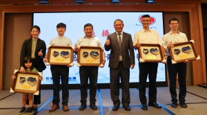 圖:花蓮縣醫師公會理事長周朝雄(右三)表揚花蓮慈院李佩蓁醫師(左起)、鄧子聰醫師、謝至鎠醫師、黃泰瑀醫師、高鴻文醫師,獲得第二十六屆優良醫師的肯定。