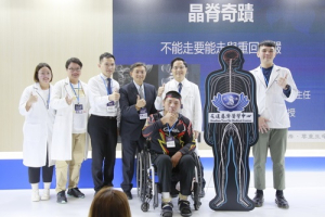12月2日早上,脊髓損傷病友達哥和醫療團隊搭著火車從花蓮到台北南港展覽館1館4樓,在2023台灣醫療科技展花蓮慈濟醫院展位,分享他在今年7月底完成脊髓電刺激器(Spinal cord stimulation, SCS)植入手術之後,在站立和走路的復健上有明顯的進步,他的目標就是日後可以手握助行器,在家中行走。