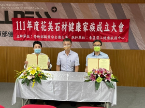 東部地區蘊藏著臺灣豐富的石礦資源,與之相關的石材產業也是當地在地的重要產業,為了守護石材業相關工作人員的健康,在勞動部職業安全衛生署與東區職業傷病防治中心的見證下,9月21日上午,花東地區成立了第一家健康家族-花美石材健康家族!由台灣區石礦製品工業同業公會理事長王淳甫與東區勞工健康服務中心主持人劉鴻文醫師,共同簽署健康家族合作意向書。