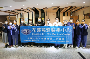 花蓮慈濟醫院院長林欣榮、副院長羅慶徽、主任秘書陳星助與護理部主任鍾惠君於五月三日帶著淨斯本草滴露、福慧粥以及靜思精舍師父製作的美味辣味蔭豆鼓,為防疫旅館的進駐同仁、工作人員加菜、補充元氣之外,林欣榮院長也以廣播的方式,虔誠祝福所有的住民們早日康復。
