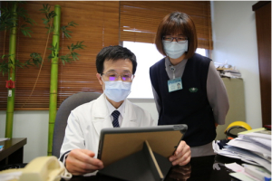 「您好,我是花蓮慈院耳鼻喉科醫師陳培榕,請問哪裡不舒服?」花蓮慈濟醫院從18日起承接花蓮縣加強型防疫旅館後,同時啟動視訊門診服務,幫助身體不適的確診病人就醫。一位隔離中的孕婦,因為喉嚨痛、流鼻水不止,幸有視訊門診,在聽完陳培榕副院長的衛教醫矚之後,緩解她內心的煎熬。