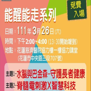 春雷一響,大地回春,萬物復甦。在這美好時節,花蓮慈濟醫學中心《能醒能走》團隊專家、神經外科部主任蔡昇宗副教授,將在三月二十六日下午分享守護長者健康好方法以及智慧科技醫療新進展等相關主題,誠摯邀請您三五好友相約報名參加。
