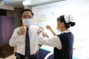 衛生福利部於十二月二日宣布開放新冠肺炎病毒(COVID-19)疫苗第三劑的接種,限距離接種第二劑已滿五個月的民眾接受注射。花蓮慈濟醫院於十二月七日開打第三劑,首場共計二百五十人前往花蓮靜思堂地下一樓疫苗門診接種疫苗,院長林欣榮與護理部主任鍾惠君也早早抵達疫苗門診,挽起袖子露出臂膀,接受護理師的注射。