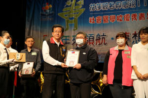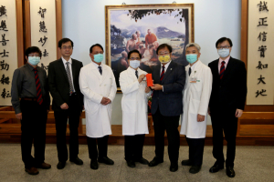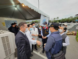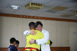 中華民國醫師公會全國聯合會理事長邱泰源十日上午抵花蓮慈濟醫院,致贈慰問金給搶救太魯閣號事故傷患的醫療團隊,並代表醫界致贈白袍給參與事故隧道內搜救的吳坤佶醫師。