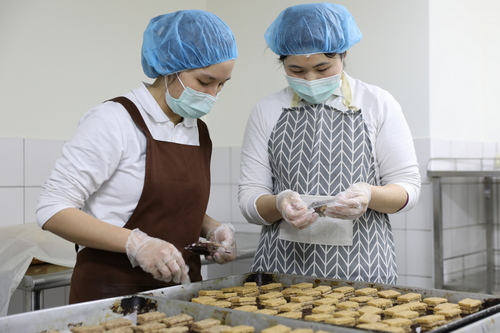 圖說:花蓮慈濟醫院營養科團隊總動員,特別製作500份,一共3000片的無蛋、奶、糖、麵粉等成分的全植物手工餅乾。