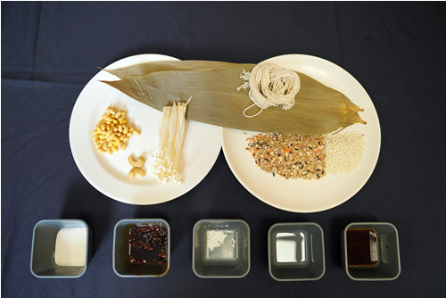 3.內餡:黃豆20g、金針菇10g、堅果1顆(約2g)、烹調油1/4湯匙(約1g)