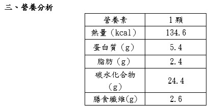圖:花蓮慈院養生好吞粽營養分析表