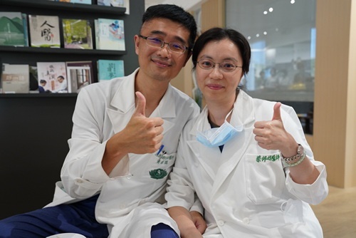 圖:麻醉部麻醉恢復室主任蔡佩娟與急診部急診內科代理主任黃泰瑀醫師夫妻倆第一次在院裡吃到歐式素食自助餐,決定茹素從兩餐變為餐餐,他們也對素食沙拉甜筒,口感比連通道版更綿密大為驚豔。