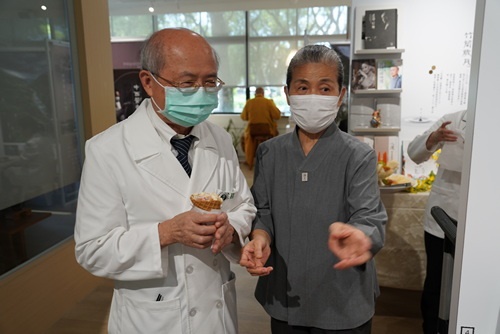 「一切都要感恩林欣榮院長,他最支持志工做事,而志工最聽上人的話,上人就是非推素食不可」,顏靜曦師姊指出,打造「大愛醫療溯源館」就是要讓鄉親同仁知道為什麼有花蓮慈濟醫院;也藉由大醫王、白衣大士等所有的同仁來幫助更多病人,希望人人茹素,顧健康也涵養慈悲心。