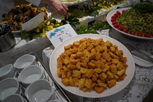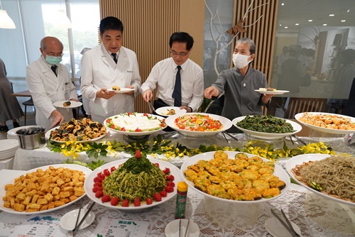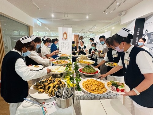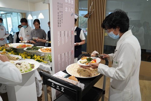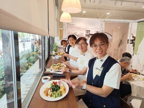 發表會中的蔬食料理也是取自同仁在「蔬福食堂」餐盒問卷回饋希望再回味的菜色。營養科組長童麗霞指出,感恩有靜曦師姊帶領,人力資源室、營養科、總務室同心圓供膳組及志工等團隊通力合作,才能完成這項任務。