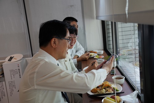 右圖:林欣榮院長,用餐之餘也把美食傳播給親朋好友。