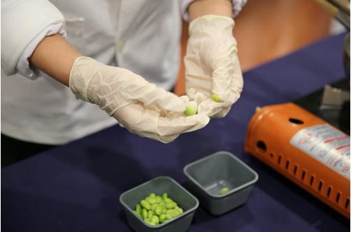 毛豆是日本仙台盛產的食材,當地居民會將毛豆製作成各式各樣的料理及點心,而花蓮慈院所推出的「毛豆大福」顛覆多數人對於毛豆料理多為鹹食的既定印象,以植物性蛋白為重點取代紅豆沙等甜膩內餡,每一人份的毛豆大福約含有成人一日所需豆蛋類營養的十分之一,能夠攝取到足夠的蛋白質;外皮薄嫩Q彈,內餡鹹甜適中的綿密口感,是一道老少咸宜又富有營養價值的點心。